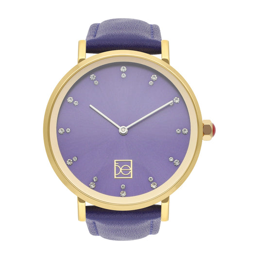 Reloj Analogo para Dama con Correa de Tactopiel Color Purpura con Ojales Dorados OE2516
