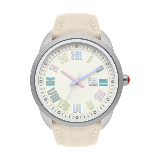Reloj Cloe Análogo para Dama con Indicadores de Colores en Números Romanos y Correa de Tactopiel