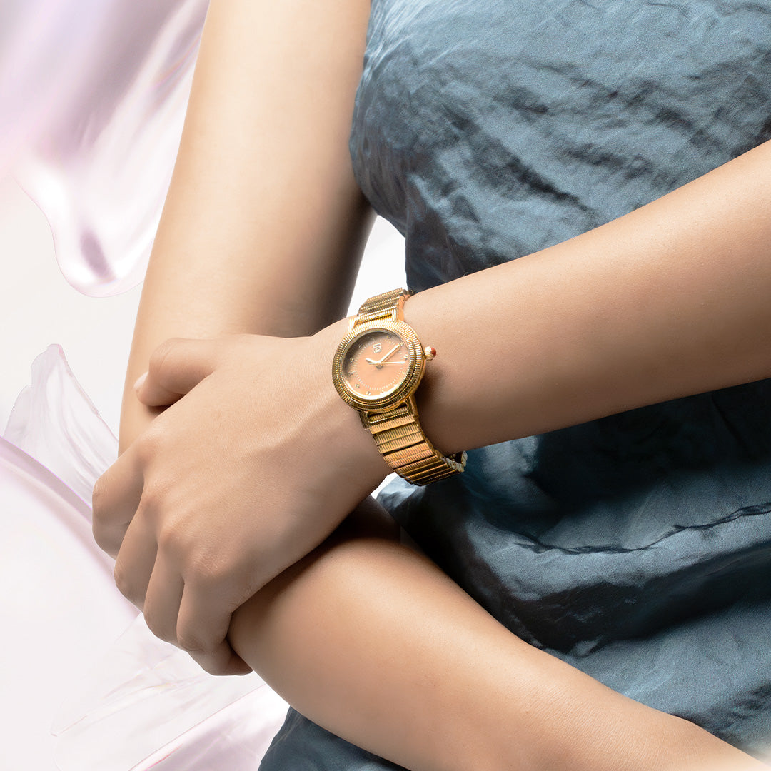 Reloj Cloe Análogo Caja Ovalada y Extensible de Acero Inoxidable OE2548-GL