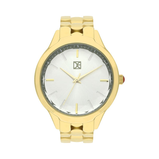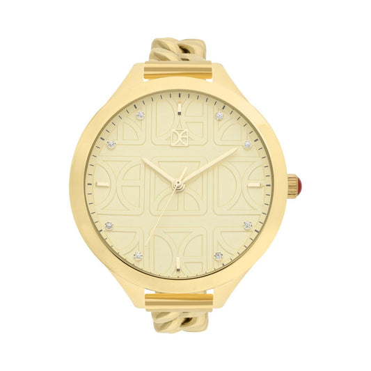 Reloj Análogo Cloe Para Dama con Pedrería Trama en el Fondo y Extensible Color Dorado OE2445