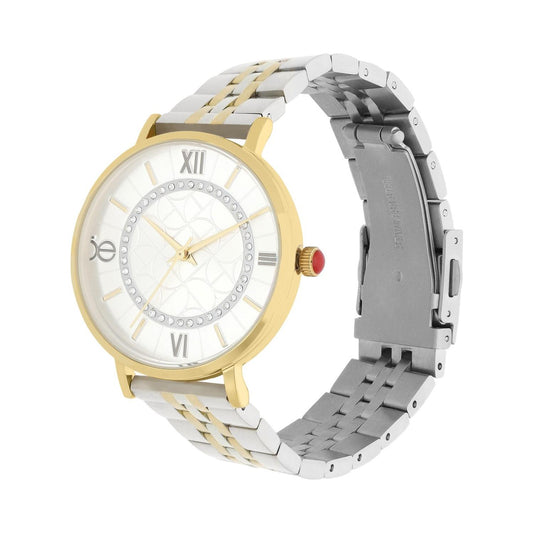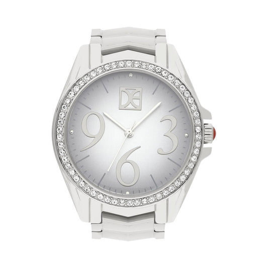 Reloj Cloe Analogo para Dama con Pedreria en Bisel, Simuladores y Extensible Color Plateado OE2443
