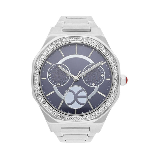 Reloj Analogo para Dama con Cristal Facetado, de Acero Inoxidable Color Plateado OE2439