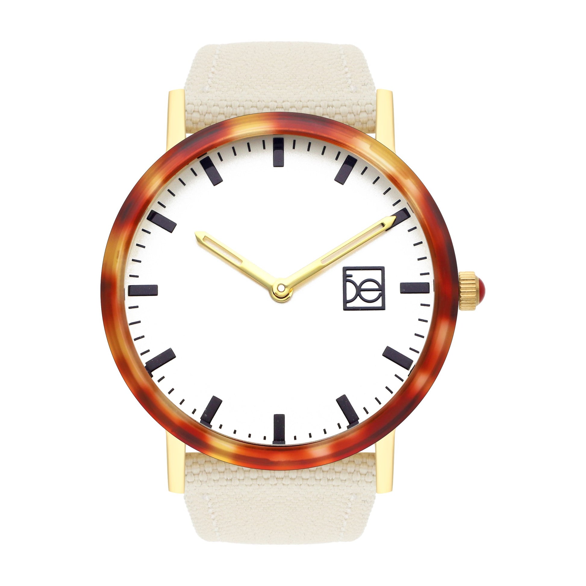 Diseño casual con un detalle original. Este reloj Cloe destaca por su bisel estilo carey que enmarca una carátula limpia y fácil de leer. La correa de tela y el contraste de colores lo hacen ideal para llevar todos los días con un estilo relajado.