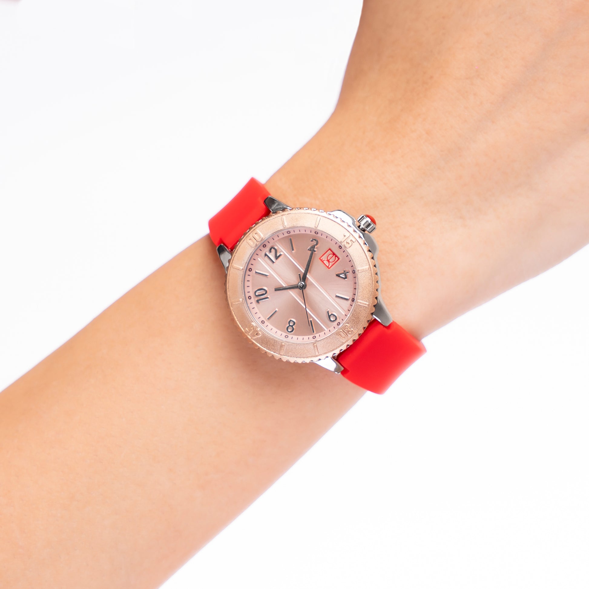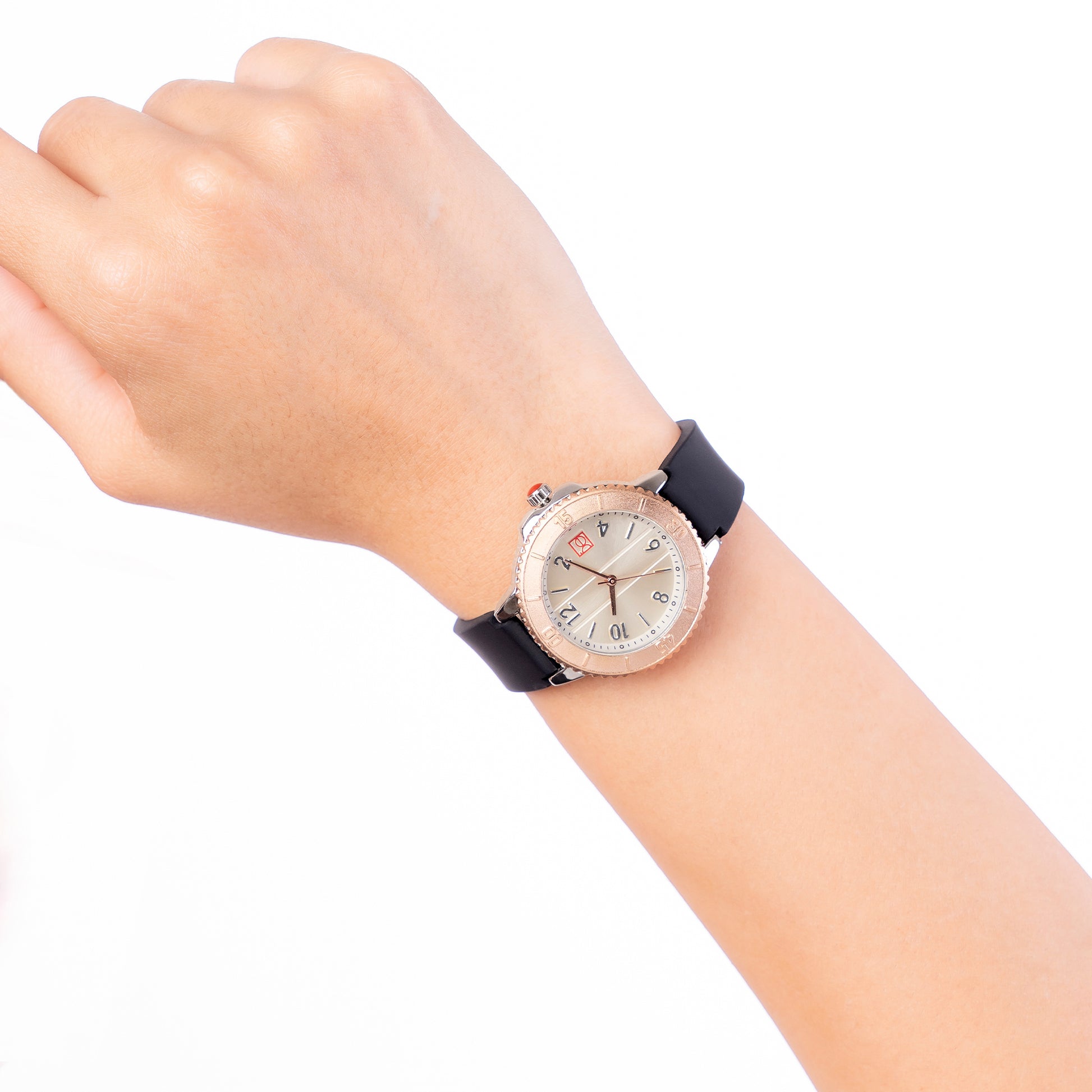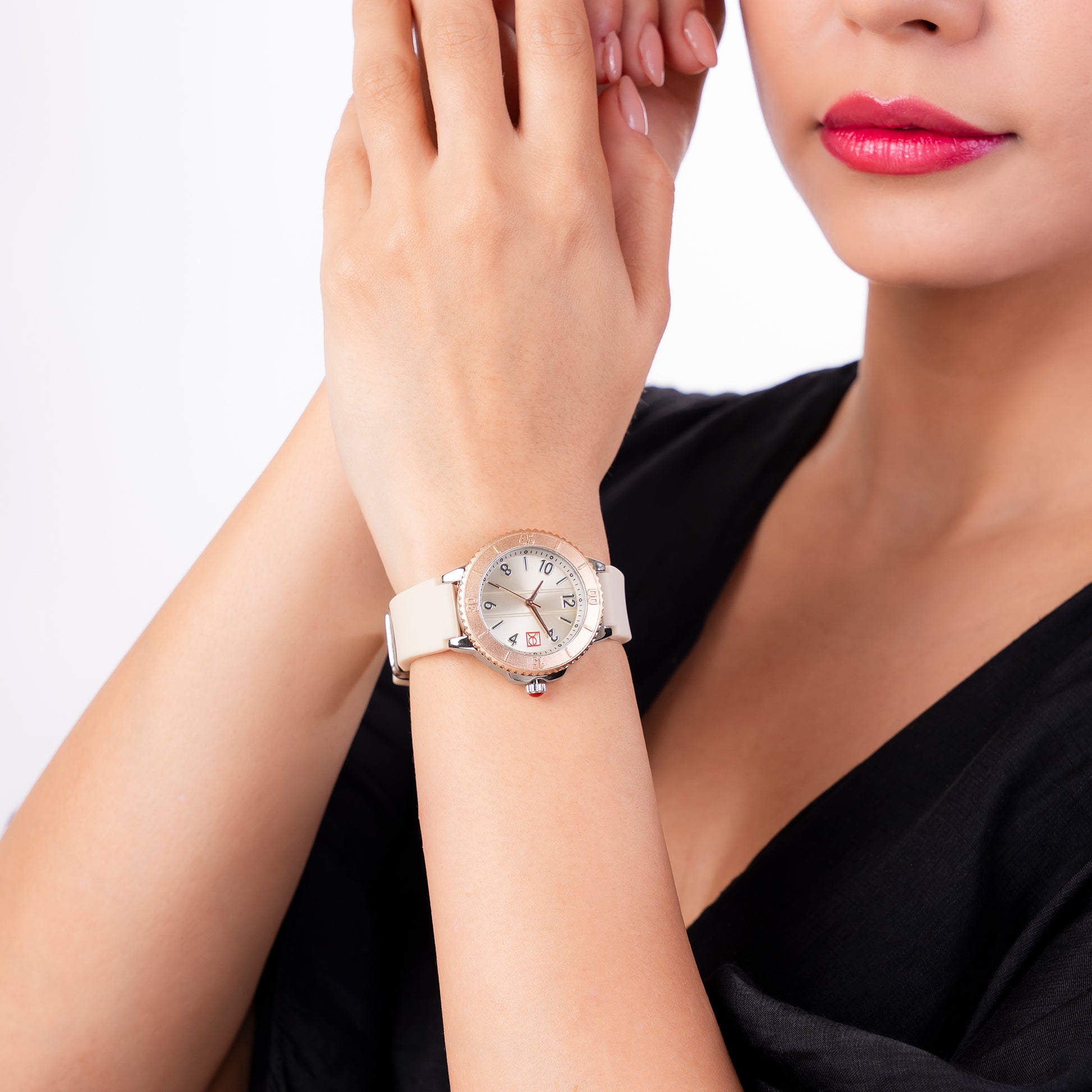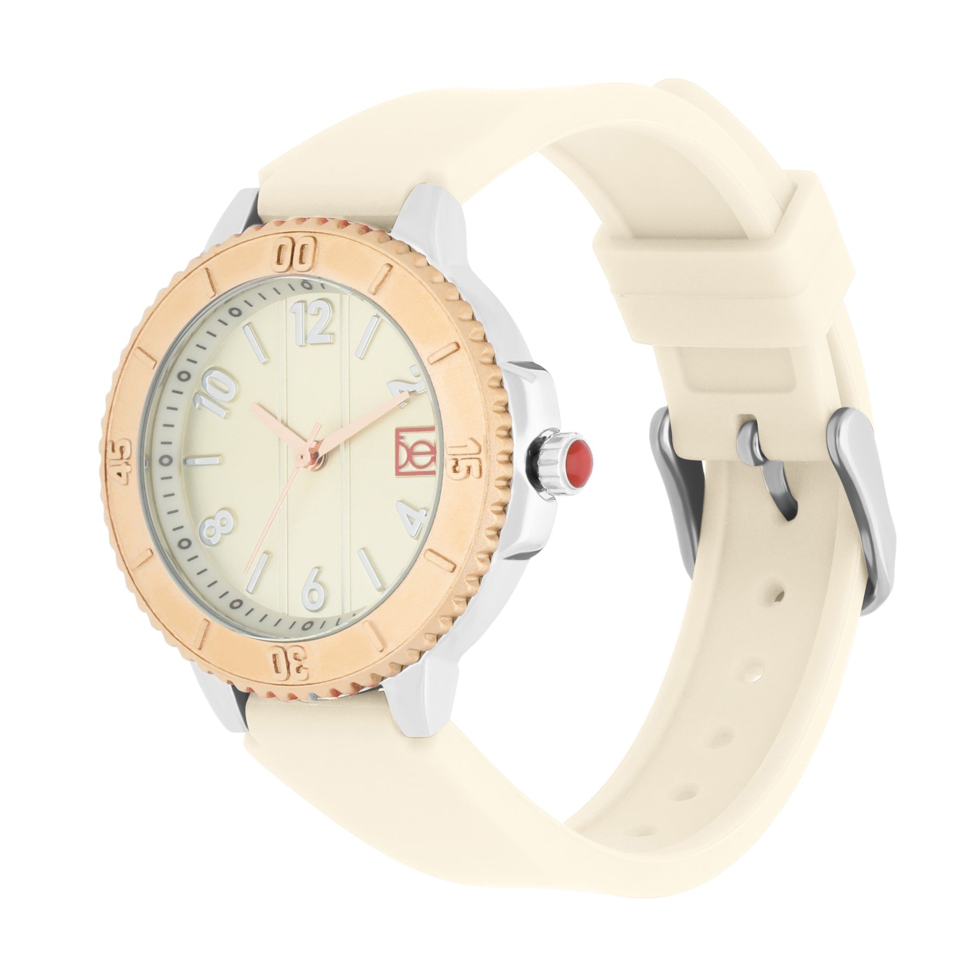 Reloj Cloe Análogo para Dama con Bisel con Simulador y Correa de Silicón