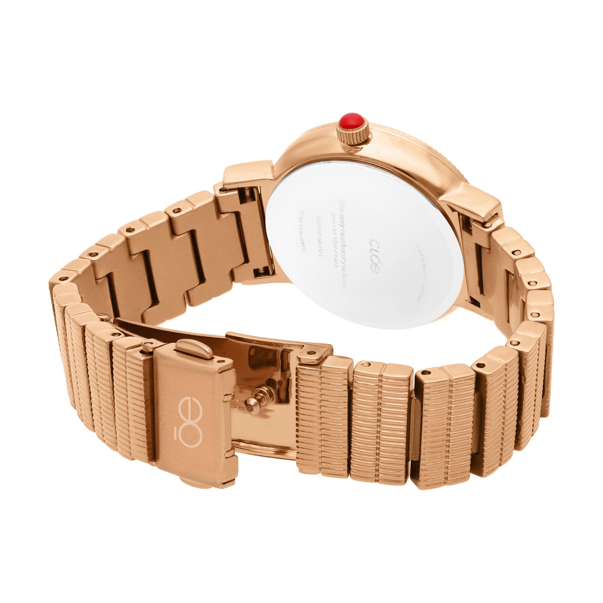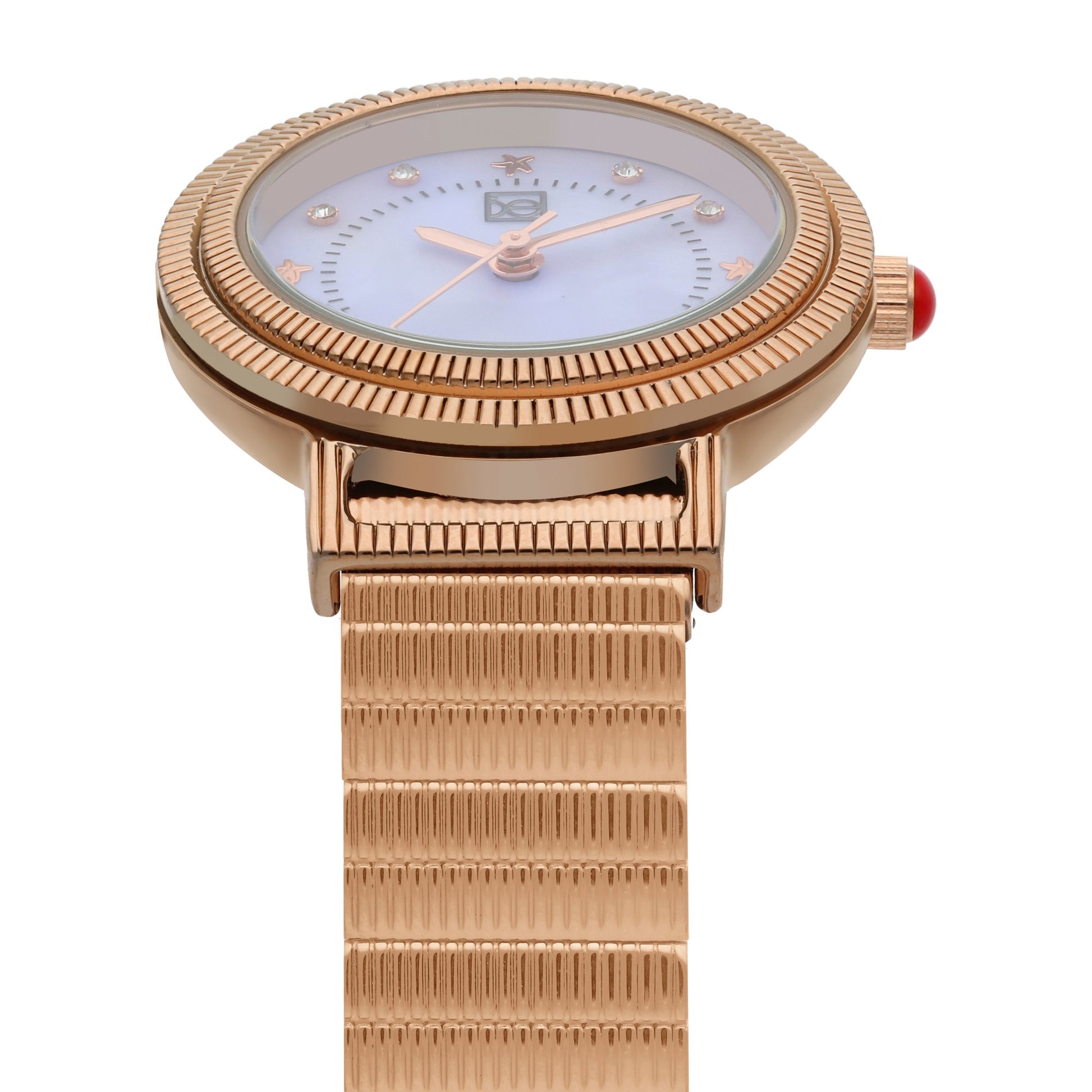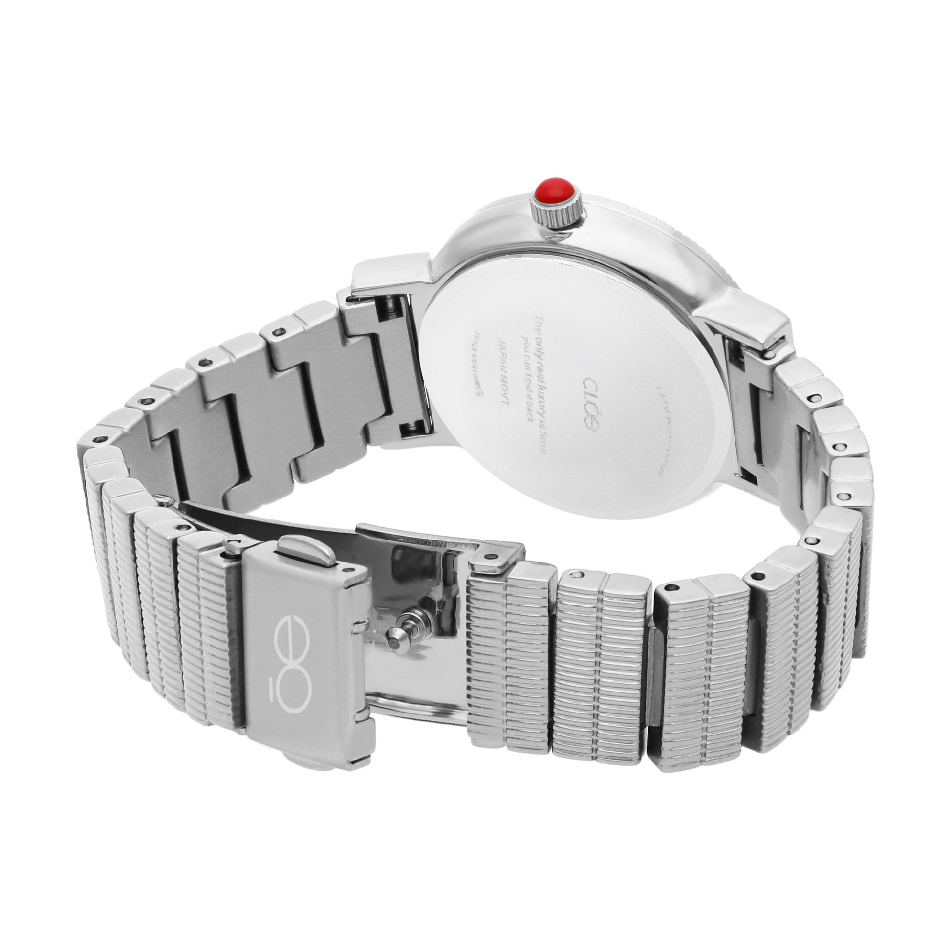 Reloj Cloe Análogo para Dama con Doble Bisel Estriado y Extensible de Acero Inoxidable
